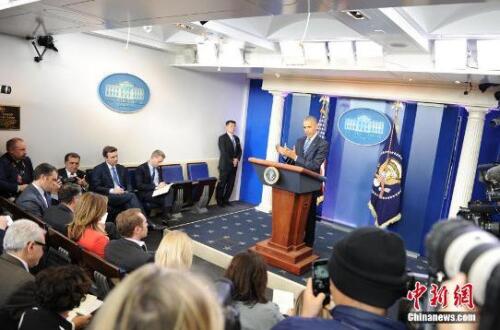 當地時間2016年12月16日,奧巴馬在白宮舉行年終記者會。 中新社記者張蔚然攝