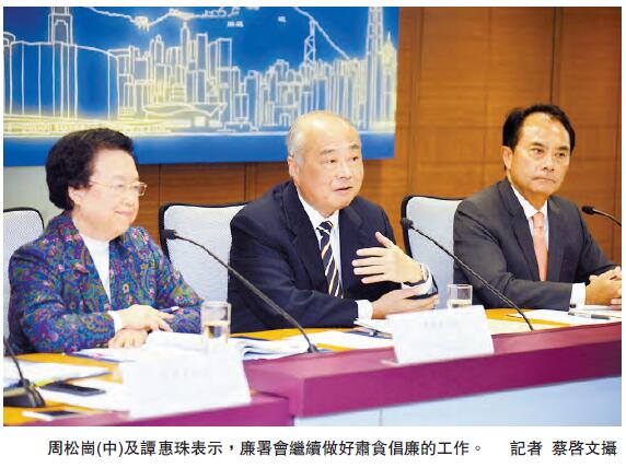 周松崗指,過去一年,香港整體貪污情況保持平穩受控,并沒有發現任何需要特別關注的新犯案手法。廉署繼續以執法、教育、預防三管齊下的方式,務求做好肅貪倡廉的工作。