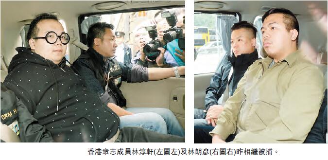 警方人員昨晨到葉志衍及周嘉發的住所準備拘捕兩人,但他們當時並不在家。至下午2時許,葉周二人自行到灣仔警察總部接受警方拘捕。葉志衍在進入警署前表示,當日並無打算傷害警員,只想到中聯辦前進行和平示威。周嘉發則指自己是參與和平的反釋法遊行,由於警方未有提及罪名,故不清楚被捕原因。至昨日近傍晚時分,林淳軒、林朗彥及盧德昌獲準各以1000元保釋。