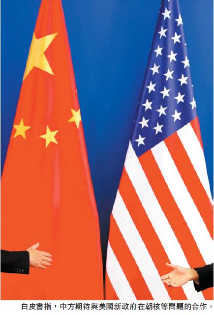 由於美國民主黨總統奧巴馬主政時期推行遏制中國的亞太再平衡戰略,白皮書中關於中美關系的論述備受外界關注。針對中美關系,白皮書指出,2015年以來中美關系總體保持穩定并取得新的進展。中方願繼續推動中美關系持續健康穩定發展,并期待與美新一屆政府共同努力,秉持不沖突不對抗、相互尊重、合作共贏的原則,拓展兩國在雙邊、地區、全球層面各領域合作。