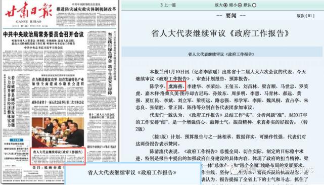 長安街知事APP第一時間查詢了虞海燕的行蹤,發現就在10日,他還參加了甘肅省“兩會”的活動,而且頗為忙碌,既作為省人大代表審議了《政府工作報告》,又參加了省政協的專題協商議政會。