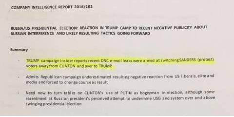這份機密情報顯示,俄羅斯“扶持”特朗普是為了“分裂西方聯盟”。俄羅斯為了拉攏特朗普,為他提供了好幾個“經濟實惠”的房地產行業大訂單,這其中許多都是2018年俄羅斯世界杯的相關訂單,所涉金額巨大。特朗普拒絕了這些賄賂,但是他本人和他的核心團隊接受了來自俄羅斯的情報,這些情報包括民主黨與其他其的政敵的黑材料。此外俄羅斯情報機構也收集了不少特朗普的黑材料用以威脅、敲詐他。