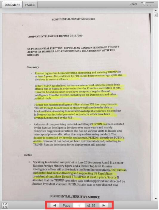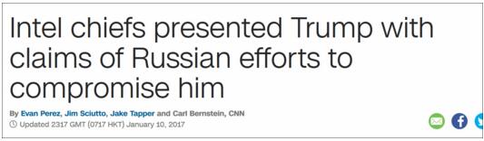 這份由3名CNN資深記者吉姆(Jim Sciutto)、杰克·塔珀 (Jake Tapper)、埃文·佩雷斯(Evan Perez)與水門案資深調查記者卡爾·伯恩斯坦(Carl Bernstein)聯名的報道,引述多名不具名美國官員的說法,主要情報來源則是前英國情報人員。