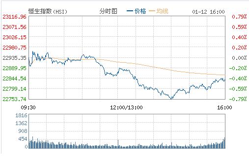 美國候任總統特朗普在當地時間周三舉行記者會,闡述其施政方針及政策,隔晚美股三大指數集體上漲。恒生指數今早高開0.09%,開盤后走勢震蕩,在100天線(約22910點)附近爭持,最高見22971點,再創逾一個月高,其后掉頭回落,午后港股跌幅擴大,最高跌近200點,低見22751點。截至收盤,恒生指數報22829.02點,跌0.46%;國企指數報9723.05點,跌0.11%;紅籌指數報3721.27點,跌0.01%。大市成交額632.53億。