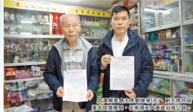 大澳鄉委會主席劉焯榮表示,近年由東涌市中心、昂坪天壇大佛前往大澳人數已達600萬人次,但交通配套沒有大的改善,由70、80年代起,東涌至大澳車程約50分鐘,但近年,旅遊人數、車輛只增不減,交通堵塞非常嚴重,近日鄉委會、香港漁民互助社等11個團體分別向發展局局長陳茂波、運輪和房屋局局長張炳良遞交建議書,該書指出,要從基本上解決大澳交通堵塞問題,建議沿石村、沙螺灣及深屈的三條村至大澳興建沿海公路,以紓解大澳交通不暢現狀。去年底,運輸及房屋局局長張炳良在書面回應立法會梁志祥議員稱,東涌道設計容車量為每日10000架次,而嶼南道和山道則為每日8000架次,因此,各路段仍有相當容量空間可受建議措施所帶來的新增車流。2014年署方簽發東涌道(石門甲道以南的一段)和嶼南道路的通行許可證12700張,當中約4000張給予區域內居住或經商人士,餘下8700張為臨時許可證。停車設施方面,現時嶼南共有48個旅遊巴士泊位及436個公眾私家泊車位。