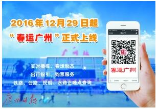 廣州日報訊(記者崔素華、吳城華)2017春運正式拉開大幕,你回家過年不?火車票、飛機票怎么買?你乘坐的列車、航班是否晚點?現在廣州火車站、廣州南站候乘人多嗎?去省、市汽車站的路況如何?春運應急啥時候啟動、啥時候取消……這一系列的問題,或者任何一個環節出現問題,你都有可能回不了家!別擔心,今年的廣州春運信息實現了權威、滾動、立體發布,想知道什么信息,都可以快速“掌”握。那就是這個神器啦——“春運廣州”微信公眾號!