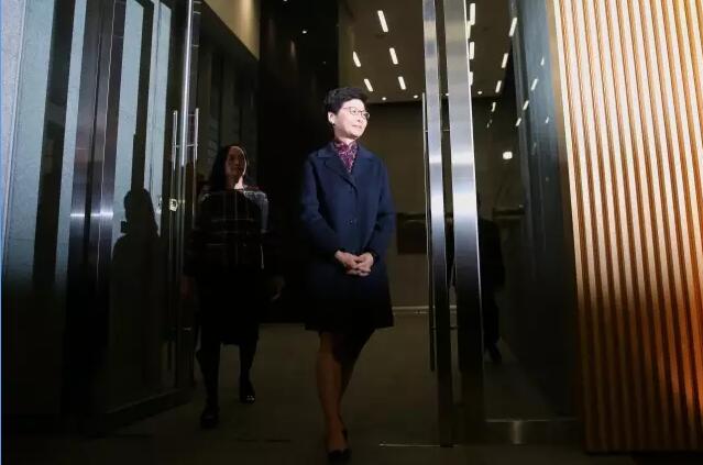 下午5時許,林鄭月娥出現在政府總部西翼大堂會見傳媒,并以中英文方式向傳媒表達其辭職參選的決定和決心。