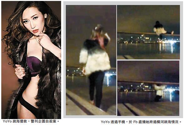 【香港商報訊】記者馮仁樂報道:曾經因為卷入裸照風波而割脈輕生的瀋模伍淑怡(YoYo),昨日凌晨在觀塘海濱長廊疑作「死亡直播」,有人哭訴「生活好辛苦」一番后,放下手機即時直播其跨越圍欄跳海的過程,幸好及時獲救送院治理,目前情况穩定,警方現列作企圖自殺案跟進。YoYo事后在醫院內再作直播,她否認自殺,又稱曾經喝酒故未能記起事發經過,她對自己的行為感到抱歉。