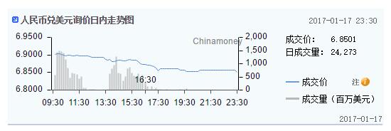新浪財經訊 1月18日消息,早間外匯交易中心發布公告,人民幣匯率中間價報6.8525,較前一交易日大幅升值467個基點。