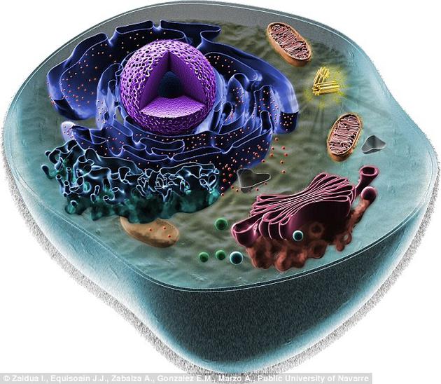 從植物到動物,甚至包括真菌,地球上的每一個複雜生命體都由真核細胞構成。這些細胞中含有被膜包裹的遺傳物質,還有線粒體或葉綠體等細胞器。圖為一枚動物細胞。