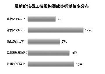 跌破員工持股計劃購買成本股票中,10只折價幅度超過一成。億陽信通、吳通控股、上海新陽折價幅度位列前三。