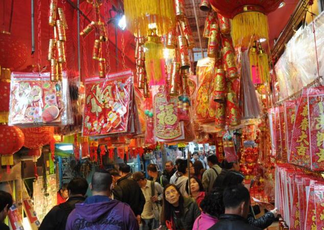 圖:1月15日,春節臨近,香港年貨市場的燈籠、對聯、中國結等進入銷售旺季\中新社