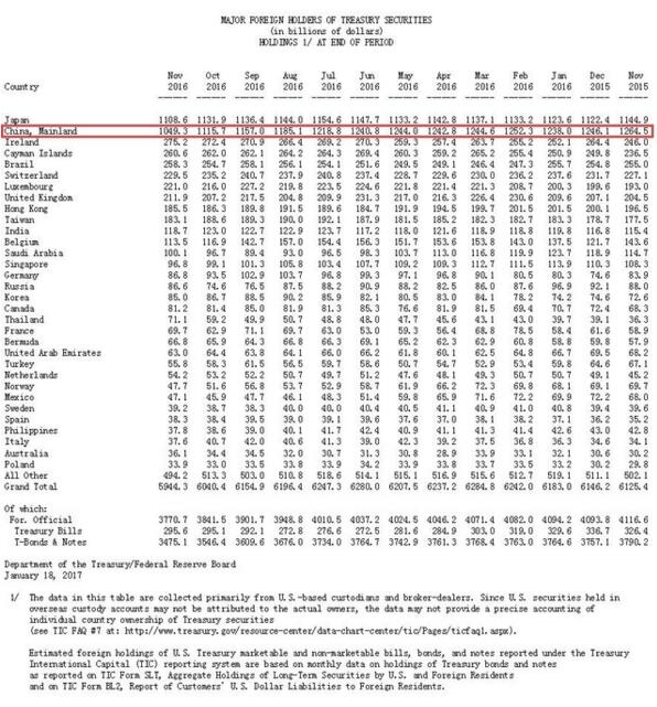 11月當月,中國所持美債規模連續六個月下降,環比減少664億美元,降至六年半來最低水平1.0493萬億美元,且減持規模較前月增長60%,降幅為2011年12月以來最大。