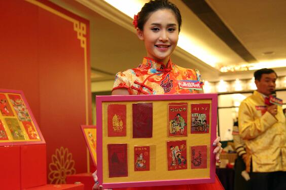 1月19日,为迎接农历新年,香港一商场举办《新地百年利是封珍藏展》,邀请广州“利是封王”收藏家陈海萍到香港展出200个藏品。