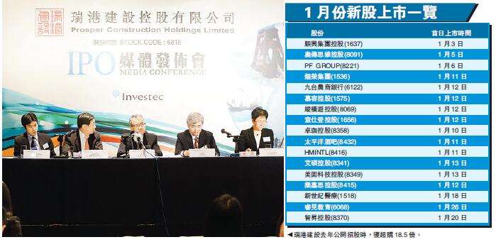 【香港商报网讯】臨近農歷新年,港股市場也迎來一波行情。近日新股市場也異常熱鬧,今年1月將有17隻擬於主板及創業板上市。投資者不妨關注九臺農商銀行(6122),另受惠於二胎政策以及內地政府推行PPP公私合營模式,也可留意睿見教育(6068),新世紀醫療(1518)。香港商報記者李映萱