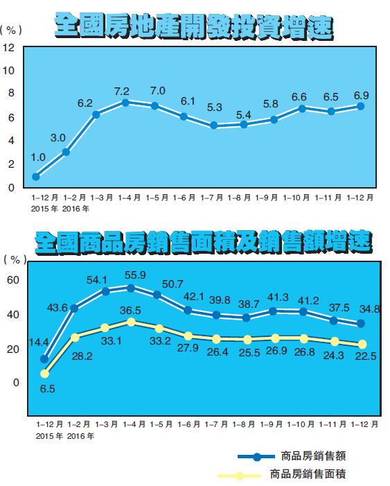 【香港商报网讯】昨日,国家统计局发布2016年全年房地产开发投资和销售数据,2016年,全国房地产开发投资增速回升至6.9%,增速比1-11月份提高0.4个百分点。同时,房地产去库存也得到了明显的效果,12月末,全国商品房待售面积69539万平方米,比上年末下降3.2%。同时,统计局预测称,今年房地产市场仍然能够保持健康发展。