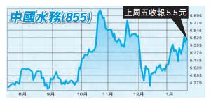 中國水務(855)近年來業績表現理想,而且,集團具有明確的運作模式和穩定的預期收益,本身前景不俗;加上水務一直在內地公私資本合營(PPP)項目中佔有重要地位。這種模式也補充了水務融資短板問題,對行業發展起到推動作用,令中國水務更可看高一線。