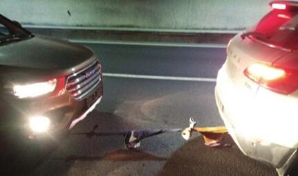 1月21日,铜仁两司机驾驶铜仁某车行的两辆商品车送往印江,不料走错路绕到了思南,其中一辆车在隧道内燃油耗尽后,两司机竟然用裤子和裤带牵引车辆行驶,没想到,另一辆车也很快燃油耗尽趴窝了。
