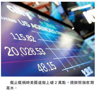 【香港商报网讯】记者伍敏报道:重磅股腾讯(700)及控(005)发力,港股於期指结算日前夕重上二万三关口,国指则跌16点,收报9742点,主板成交按日跌逾11%至536亿元。「港股通」昨日关闭,「沪股通」余额130.11亿元,「深股通」余额127.09亿元。而截止截稿时美国道指上破2万点,提振恒指夜期高水93点。