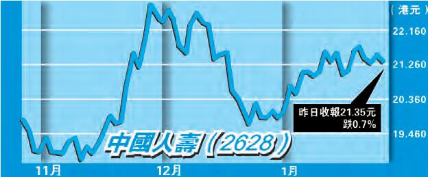 个股方面,人行货币政策由宽松转中性,内地债券息率上季开始回升,A股表现稳定,均对中人寿(2628)投资收益将有正面影响。中保监加强对内地保险公司的监管,有助遏制过度竞争,有利中人寿的保费收入增长及保单利率,并预期中人寿的市场份额有望提升。随着保证回报率下滑及长期保障型保单业务量提升,预料中人寿今年新业务价值可维持双位数字增长。目前中人寿股价相对内涵值比率仅0.8倍,远低於过去历史平均水平,估值有修复空间。建议於21元吸纳,上望24元,跌穿19.8元止蚀。