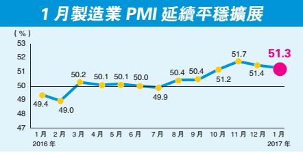 【香港商報网訊】國家統計局公布,今年1月,中國制造業采購經理指數(PMI)為51.3%,比上月微落0.1個百分點,延續平穩擴張態勢。1月中國非制造業商務活動指數為54.6%,比上月微升0.1個百分點,繼續保持穩中向好的增長勢頭。