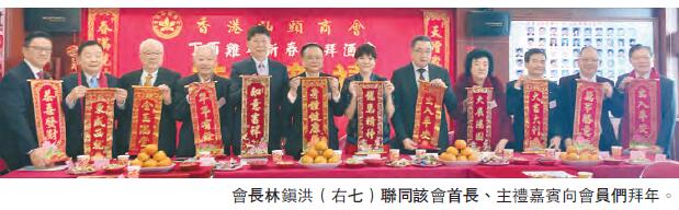 【香港商報網訊】記者謝巧玲報道:香港汕頭商會於年初七假會所舉行丁酉雞年新春團拜活動。該會會長林鎮洪、中聯辦港島工作部部長吳仰偉、中西區民政事務處黃何詠詩、香港潮屬社團總會主席陳幼南,以及榮譽會長、名譽會長、副會長、常務會董、會董、會員近百人歡聚一堂,相互拜年送上祝福,鄉情洋溢,氣氛熱烈。