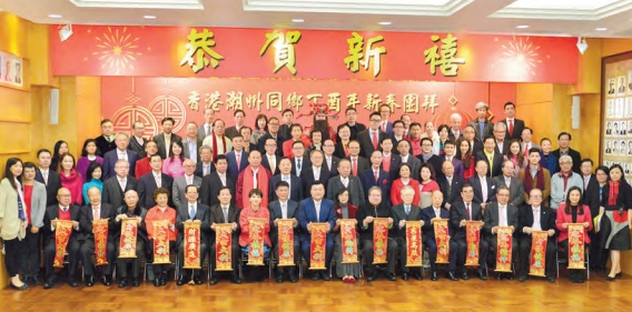 會長胡劍江致新年賀辭時表示,期待代表香港潮籍精英的邁向百年商會,百尺竿頭,更進一步。他并指,希望新的一年香港選出有為有創勁的新的行政長官,帶領香港邁向新征程。他并祝願社會繼續和諧穩定,同仁繼續發揚「敦睦鄉誼、促進工商、弘揚文化、服務社會、興學育才、扶貧救災」宗旨,一心一意做好會務,繼續關注及做好經濟、民生、扶助弱勢社群等事務,繼續密切與家鄉的關系,為廣大鄉親搭橋開路,令商會繼續朝着專業化、國際化和年輕化的道路前進。來賓相繼向與會者送上新春祝願,吳仰偉祝願該會會務興隆,共同為香港和諧穩定,為民族振興,為國家建設再創輝煌。黃何詠詩赞揚該會在社區事務,民生推展都做得很出色,冀望日后更多與商會交流,尋求多方面合作,共同推動社區和諧,社區經濟發展。衛生局副局長陳肇始、梁劉柔芬、張肖鷹分別送上新春祝賀。出席團拜的首長尚包括潮州商會永遠榮譽會長廖烈武、陳有慶、周厚澄、陳偉南、蔡衍濤、莊學山、許學之、陳幼南、張成雄,名譽會長藍鴻震,榮譽顧問胡定旭、林大輝、陳振彬、陳恒鑌、柯創盛,名譽顧問歐陽成潮、馬亞木、劉宗明、許漢宗,常務會董陳捷貴、鄭錦鐘、周卓如、馬僑生、吳哲歆、黃進達,章曼琪、林鎮洪、吳茂松,會董胡炎松、高明東、張詩培、馬照祥、陳德寧、胡楚南、黃華荣、吳宏斌、林燕勝、鄭毓和、史立德、莊小霈、顏吳餘英、史理生、周駿達、鄭會友,名譽會董邱子成,以及多位潮籍區議員。