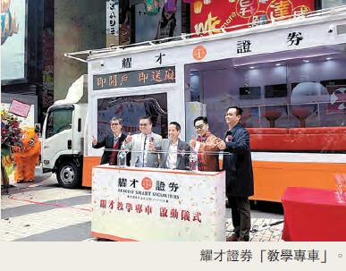 雞年又有新搞作,耀才全新方法吸納市民開設證券戶口,揀定啟市吉日年初八推出「教學專車」,專車問股票得,開戶都得,成間流動證券行,學足「流動銀行」。流動服務乃金融業新趨勢,耀才特登訂做一架同匯豐流動車差唔多大嘅貨車(見圖),內置電腦提供一對一服務,每周停泊一個固定地方,有分行職員答問題,街坊問股票兼開戶,運作同證券行服務無異,專車會走遍全港不同地區,特別針對旅遊景點?中國旅客。