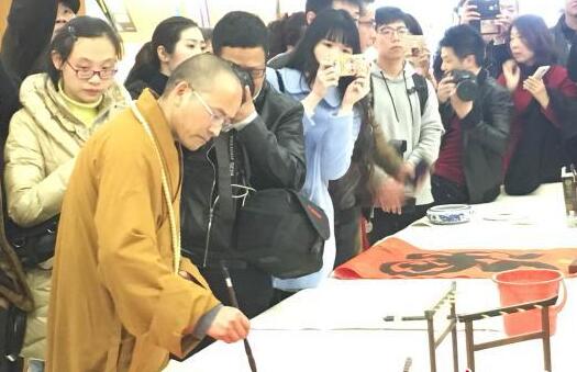 中新網福州2月6日電 (記者 林春茵)春意盎然的正月初十,福州市民以逛書店、賞書畫的方式迎新春。“慈能拔苦”條幅、“萬事不營心”米勒像,近60幅禪師書畫6日在福州鼇峰坊書城展出,多位福建名寺住持現身潑墨,為福州市民的新春來帶墨香禪趣。