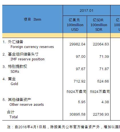 央行今日公布的中國外儲數據顯示,中國1月外匯儲備為29982億美元,跌破3萬億美元關口,為2011年2月來新低,前值為30105億美元,1月底外匯儲備較上月降123.1億美元,連續第七個月下滑。