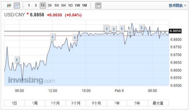 2月7日,在岸、離岸兩個市場的人民幣兌美元匯率都出現了較大幅度的下跌。當日,人民幣兌美元中間價調升2個基點。但即期人民幣匯率早盤就逆中間價下跌超過100點;下午外匯局公布外儲數據后,跌幅擴大,離岸市場人民幣更是出現“直線跳水”現象,瞬間跌去60點。截至下午6:00,離岸人民幣跌340點報6.8342,在岸人民幣跌198點報6.8835。