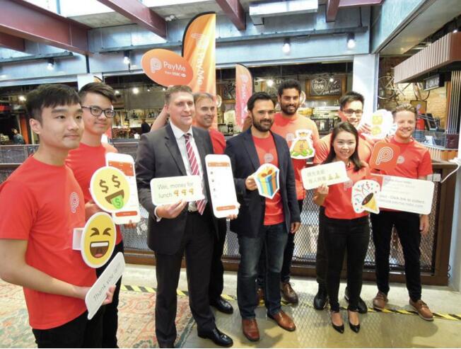 圖:客戶只需憑信用卡和銀行戶口,即可透過其「PayMe」應用程式作即時轉帳用途。圖為管理層昨日出席宣傳推廣活動