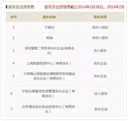 清晗基金的這份股東名單可謂星光熠熠。出資200萬、占股份3.09%的盛希泰是前華泰聯合證券公司董事長,后和俞敏洪一起創辦了洪泰基金,做創業投資;