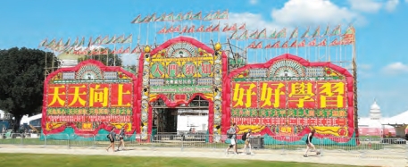 註:「花牌紮作技藝」屬於《首份香港非物質文化遺產清單》第5.44項。花牌主要用來慶祝神誕活動、新廈落成、店舖開張,而上面會寫上活動名稱及資助者姓名。