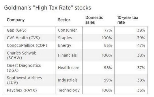 針對特朗普的稅改計劃投資策略,高盛及摩根大通建議投資者押注“高稅率公司”,以期能夠從減稅中獲得最大益處。他們也給出了相應名單。