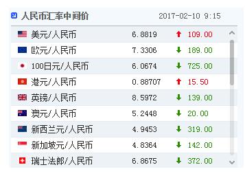 新浪財經訊 2月10日,外匯交易中心數據顯示,人民幣兌美元中間價報6.8819,上日中間價6.8710,貶值109個基點。上日官方收盤報6.8672,夜盤收盤報6.8675。