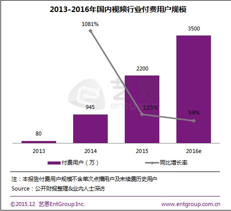 內地視頻行業的付費用戶數量快速增長。數據來源:藝恩咨詢研究