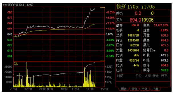 “黑色系”午后迅速拉漲,鐵礦石漲停,漲幅近8%。