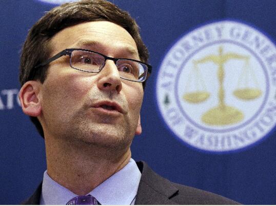 2月9日,在美国西雅图,华盛顿州司法部长鲍勃·弗格森出席记者会。