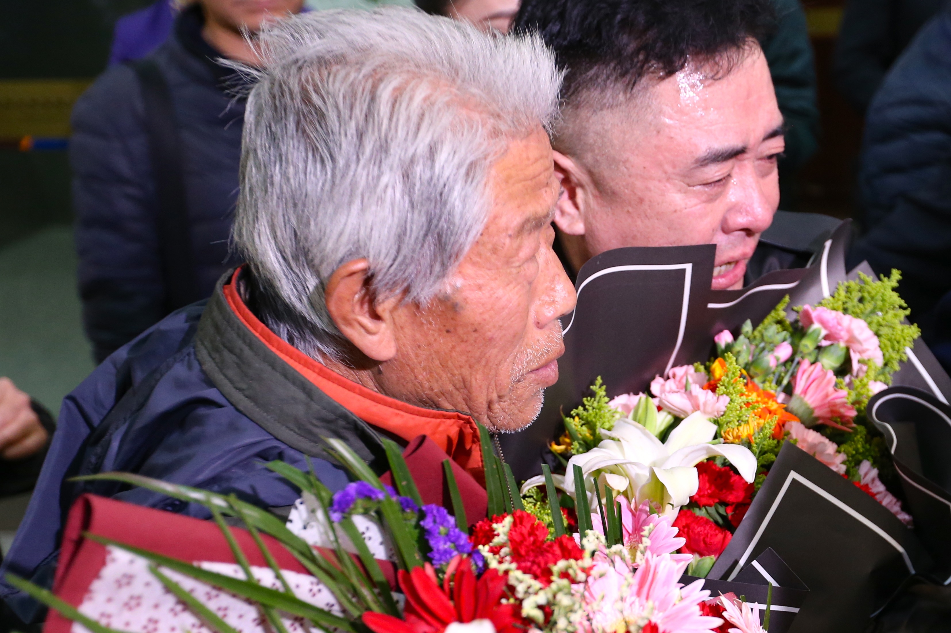 见到家人的王琪泪流满面。在众多媒体为王琪老人与家人合影留念时,老人紧紧握着大哥和二哥的手。