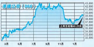 南港島線已於去年12月底通車,成功吸引客流量增長,加上票價亦有上升,相信能在全年業績中反映。此外,集團預計其沙中線大圍至紅磡段有機會於2019年提早通車,而紅磡至金鐘段將於2021年通車,屆時可望覆蓋全港70%居住人口的地區,能為收入帶來貢獻。現價買入,上望44元,跌穿36元止蝕。
