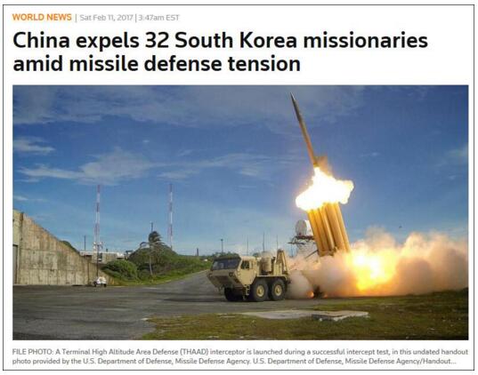 【觀察者網 綜合】據參考消息援引外媒消息,韓國外交部官員2月11日稱,中國1月份驅逐了32名韓國傳教士,又在2月初逮捕了一名韓國公民,但尚不清楚這是否與部署薩德反導彈系統有關。