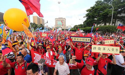 臺灣退休軍公教人員于2016年9月3日發起“反污名,要尊嚴”大游行,抗議民進黨當局
