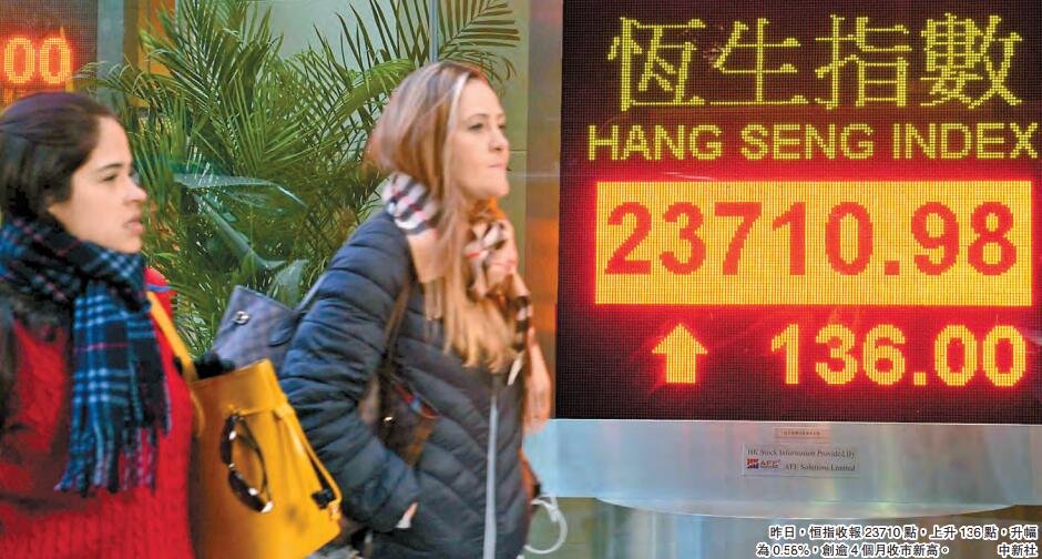 【香港商報网訊】記者伍敏報道:港股延續上周升勢,連漲4天后累升379點。昨日,恒指收升136點,報23710點,創逾4個月高;國指升132點,收報10257點,創逾一年高位。主板日成交增6%至907億元。其中,中資金融股升勢凌厲成上升催化劑,惟后市24000點大關能否突破仍有待考驗。