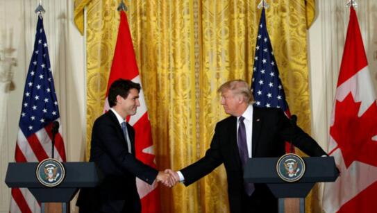 特朗普13日在白宮會見加拿大總理特魯多,并舉行共同記者會。他在競選期間曾經一再強調要大幅修改美國、加拿大和墨西哥三國在1990年代簽訂的“北美自由貿易協定”,稱美國在這一自由貿易安排中受到不公平對待。
