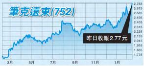 筆克遠東(752)已上市多年,筆者一直有留意,並曾經與其管理層見面,覺得對方是一個踏實的生意人,集團早前公布2015/16年度業績,表現不錯,並派特別股息,股價在消息公布後雖然出現回吐,但昨天已創出52周新高,並迫近歷史高位,相信後勁仍在。
