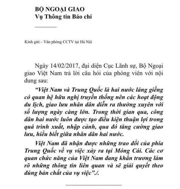 原標題:越南外交部就中國游客在芒街口岸被毆打事件 以郵件形式對央視記者作出回應