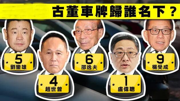 再如,車牌 “6” 是港人尊稱 “六叔” 的邵逸夫的專用車牌。