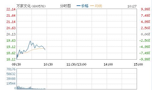 受趙薇融資方案未獲銀行批準的利空因素影響,萬家文化早盤大跌,開盤跌停隨后跌幅略有收窄,截至發稿,萬家文化跌7.7%報18.12元,成交3.21億元,換手率3.65%。