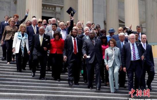 當地時間6月23日,美國首都華盛頓,數百名民主黨眾議員從國會大廈走出。22日,這些民主黨議員們在美國眾院會議廳靜坐,抗議共和黨遲遲不通過“禁止疑似恐怖分子購槍與加強背景審查”的法案,并希望藉此抗議迫使共和黨為控槍法案投票。